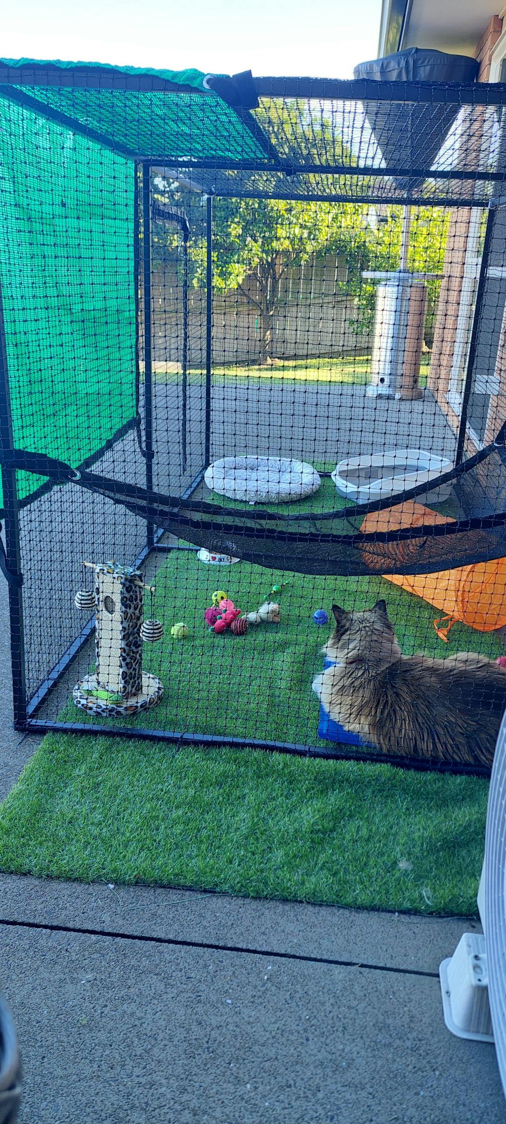 The Catnets 1.2m Hammock and 1.2m Shade Sail are recommended add-ons for this Enclosure.