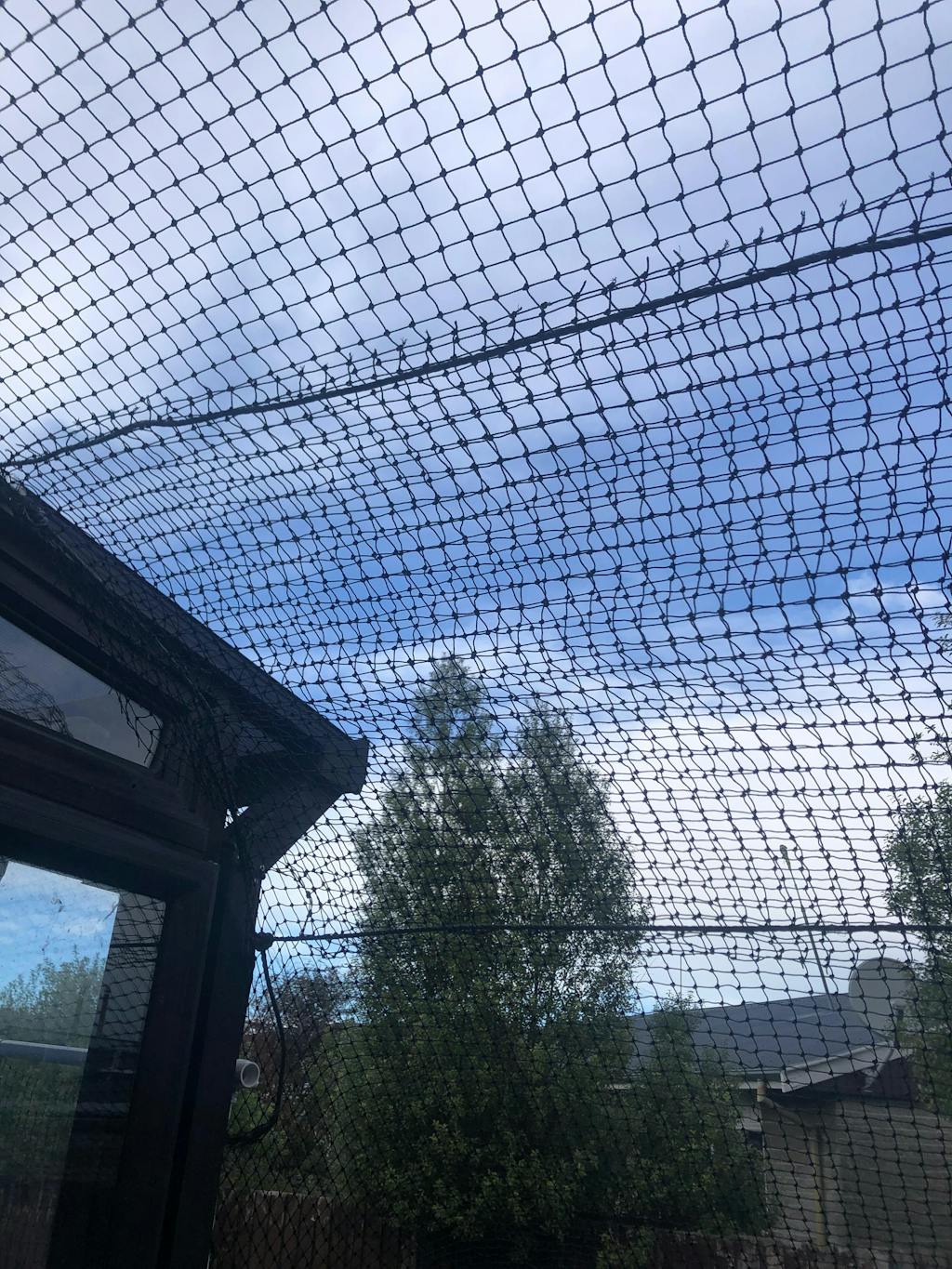 Fold 1 mesh of your netting over along the edge, and then interweave the rope (in and out of the meshes) along the length of the net. This creates a neat, secure and strong edging to your cat netting.