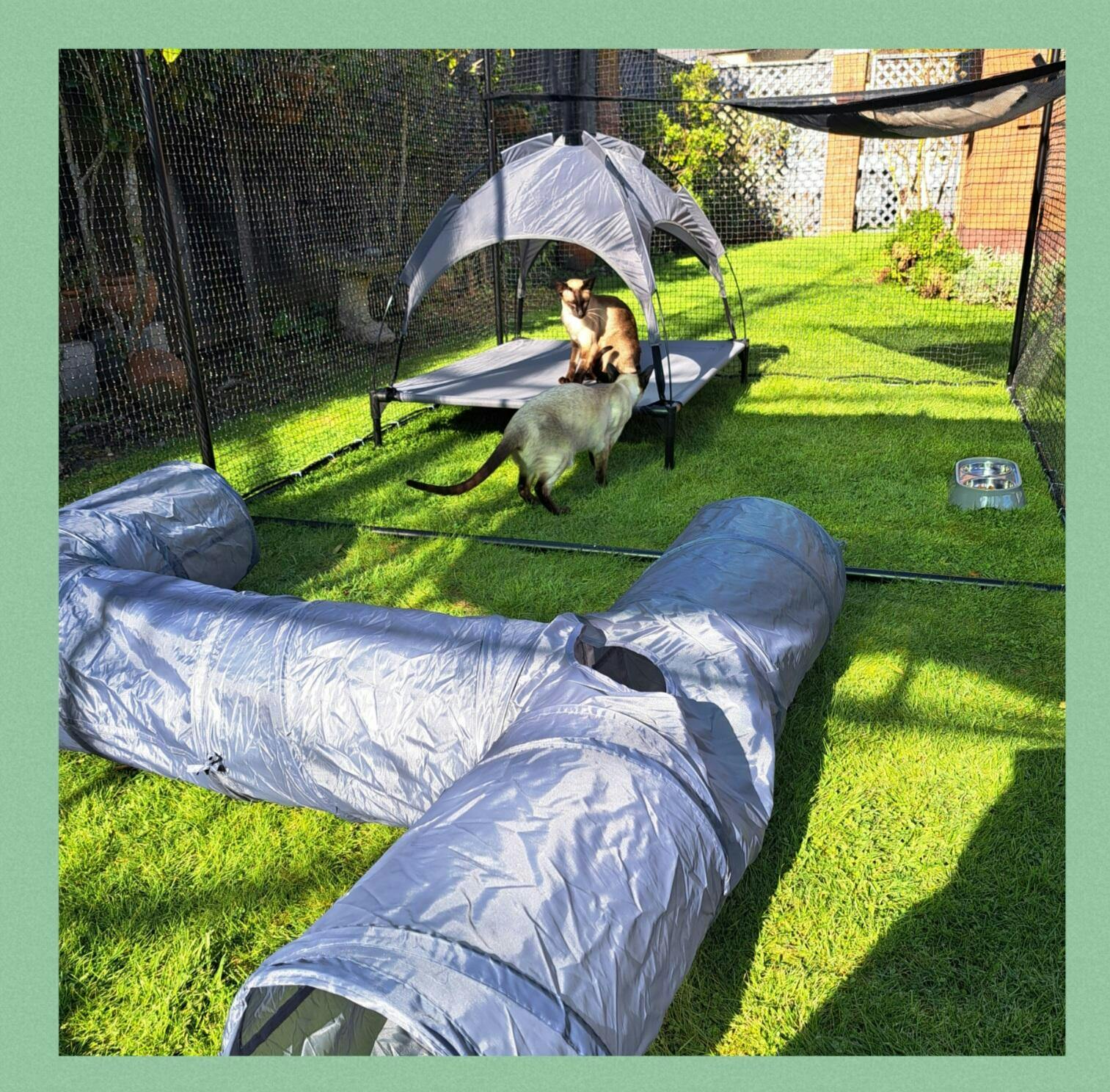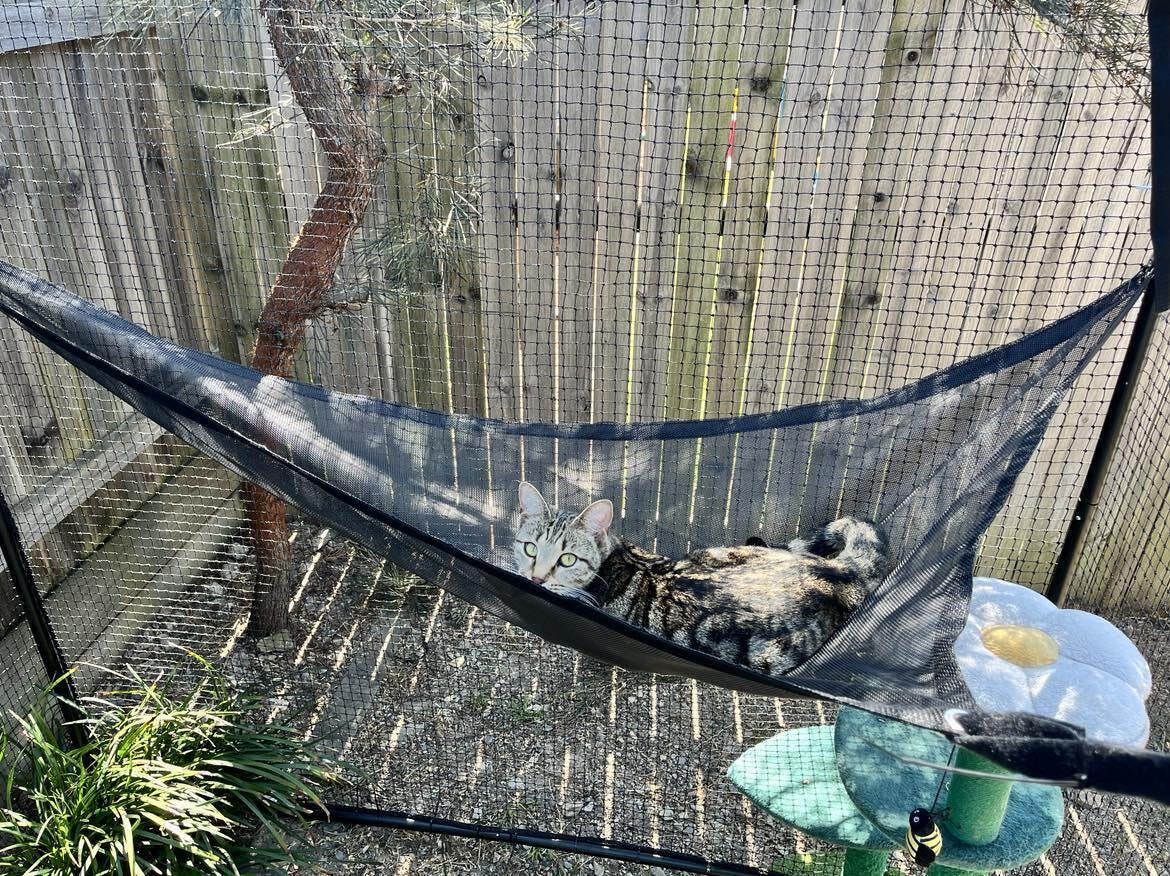 The Triple 5.4m Freestanding Catnets Enclosure is large enough to fit multiple cats and is an easy way to keep your cats stimulated and happy, allowing them to soak up some sun and safely enjoy the outdoors, while you can rest easy knowing that you are purchasing the highest quality netting in the market.